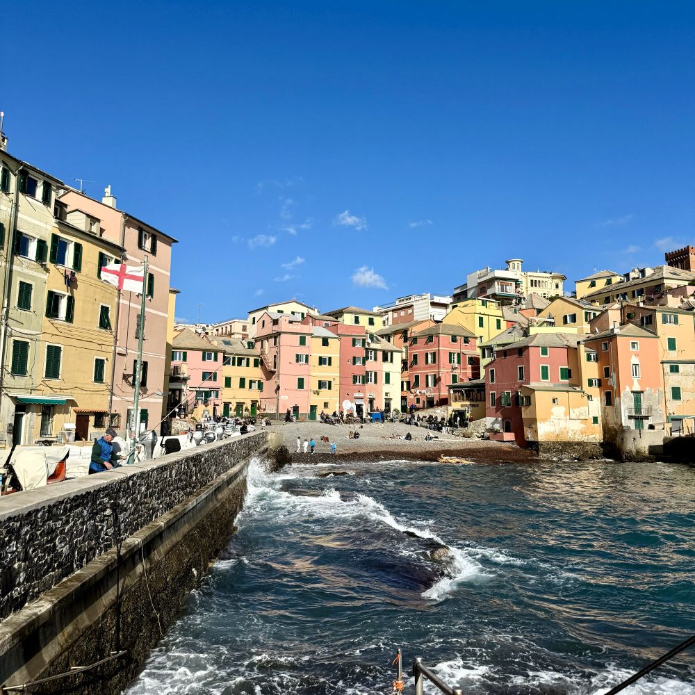 Boccadasse war ursprünglich ein kleines Fischerdorf, welches durch die Ausdehnung Genovas während der Industrialisierung schließlich im Jahre 1873 eingemeindet wurde. Der mittelalterliche Dorfkern an der kleinen Mittelmeerbucht ist jedoch weiterhin gut erhalten. Daher ist Boccadasse mit seinen engen Gassen und bunten Fassaden ein pittoreskes Kleinod in dieser 565.000-Einwohner-Stadt, welches beim heutigen Kaiserwetter besonders fotogen daherkam (siehe auch Titelbild).