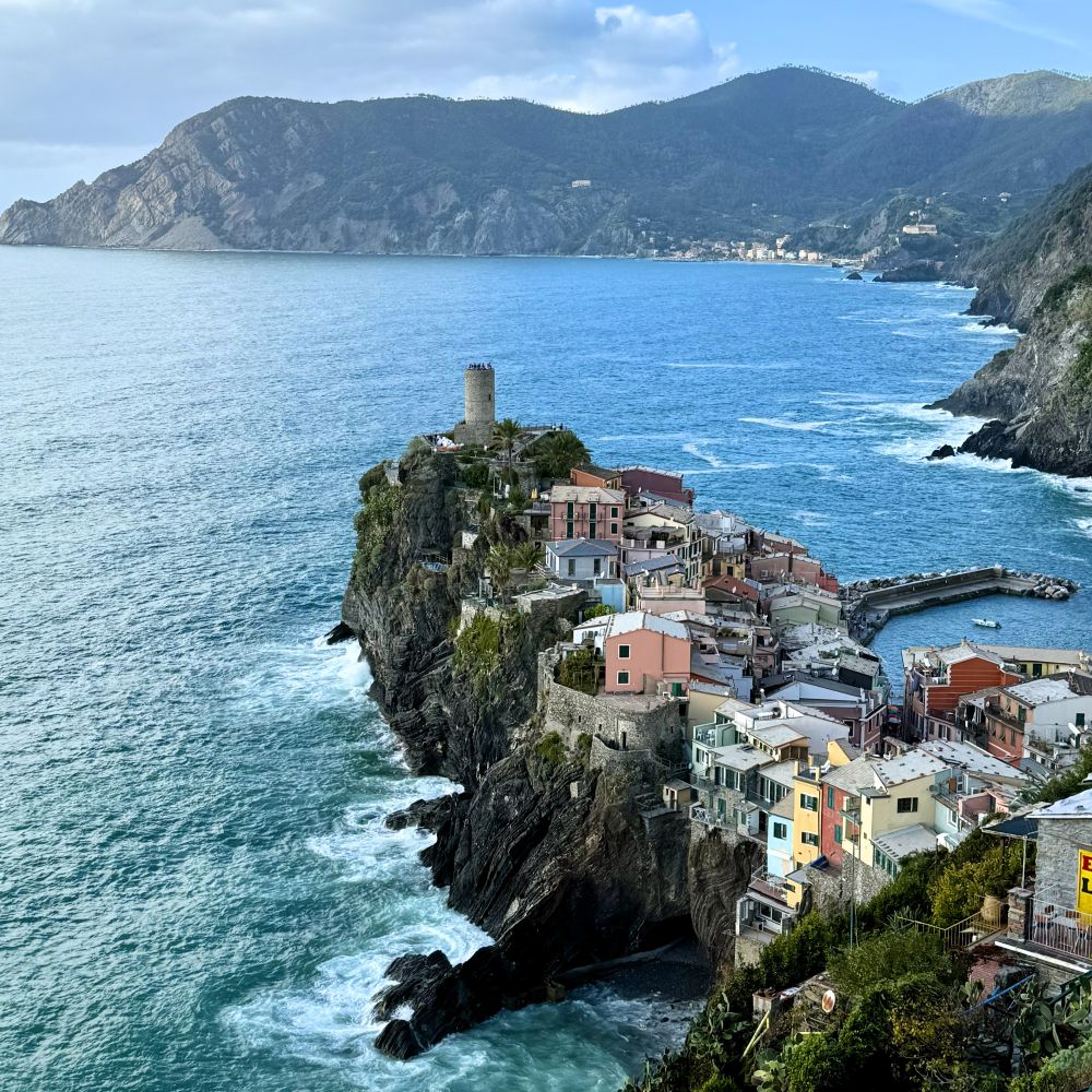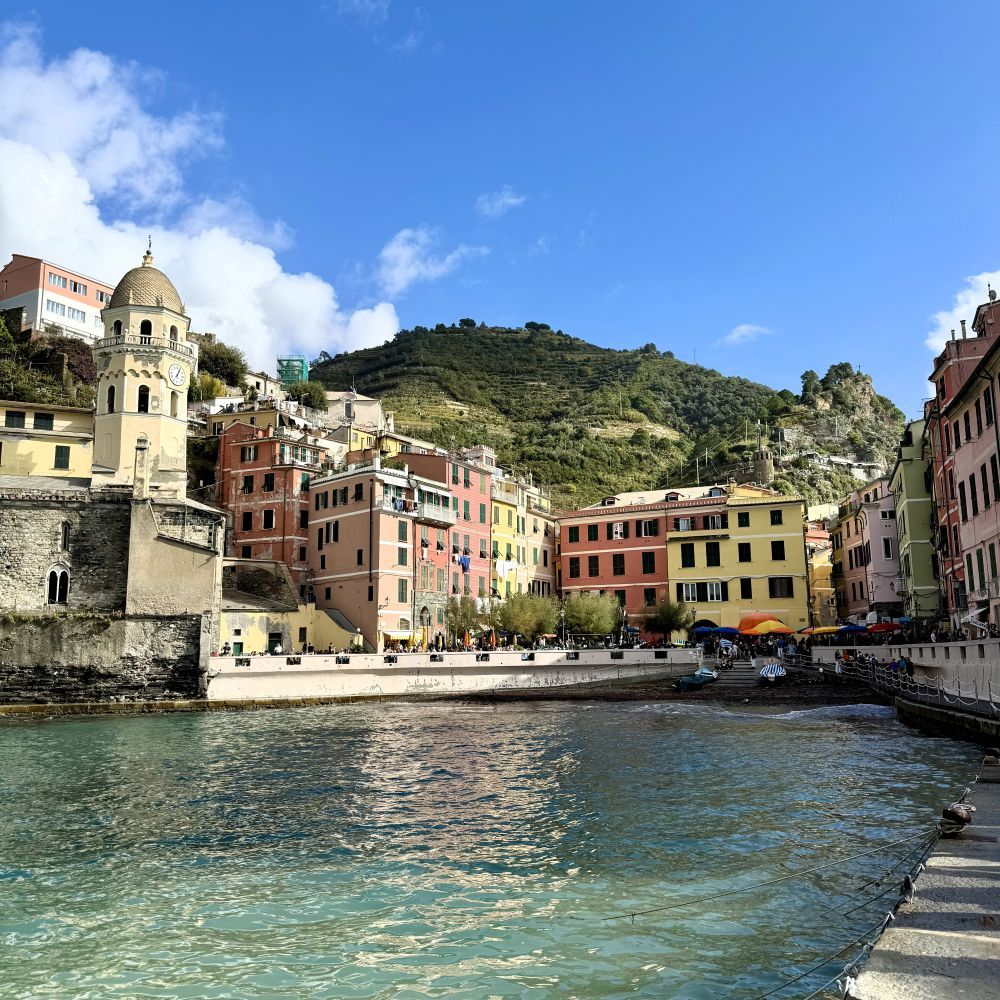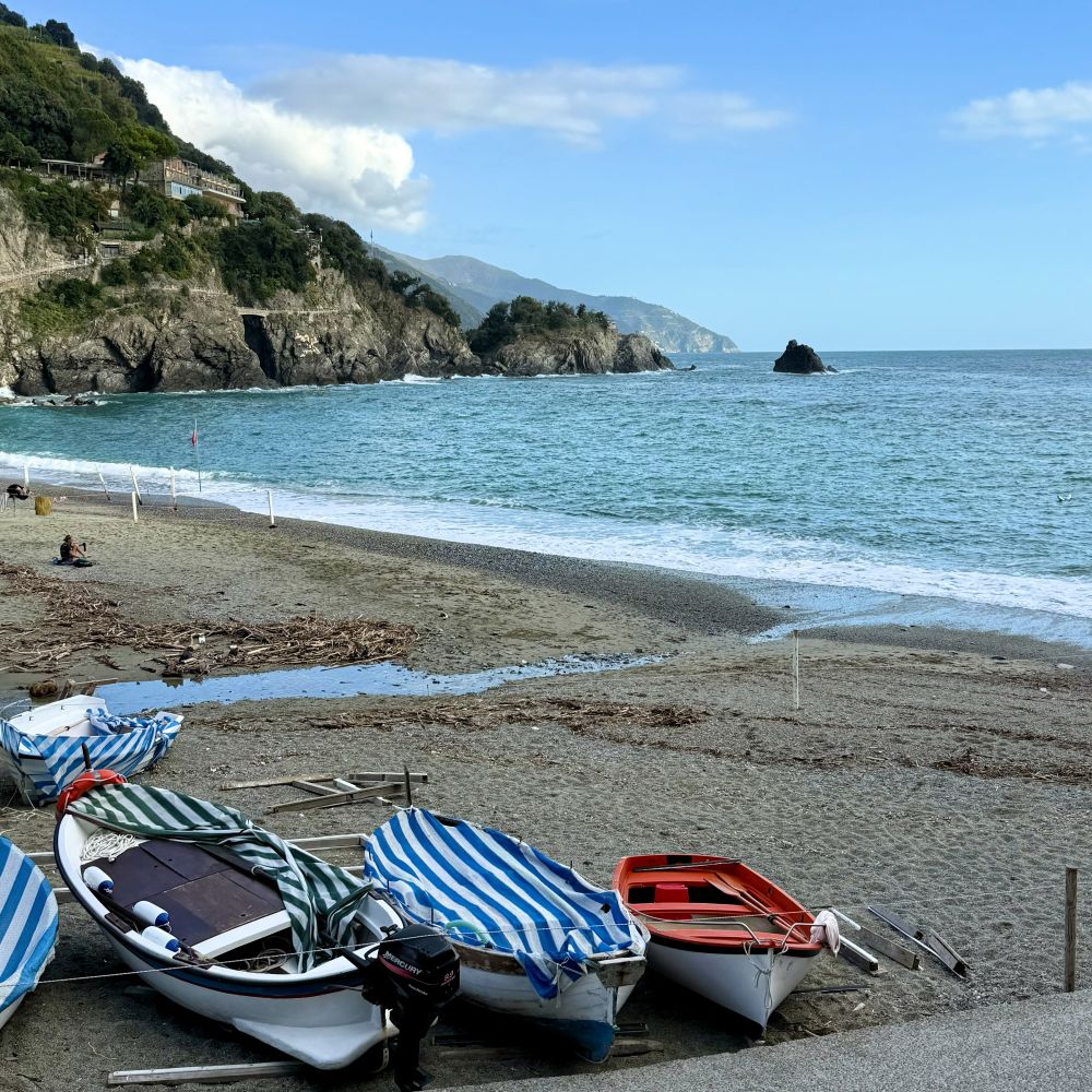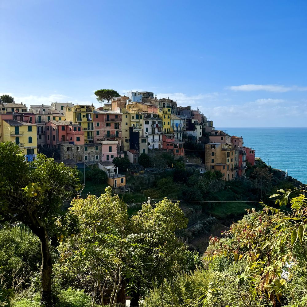 Vom Coperto können wir fast gleich zur Coperta überleiten. Denn nach ein paar Absackern in unserem Esszimmer ging es gegen Mitternacht unter die Bettdecke. Allerdings nur für rund sieben Stunden, da wir um 8:14 Uhr bereits wieder in einem Zug sitzen mussten. Dieser transportierte uns für 11,80 € pro Person binnen 136 Minuten ins Küstendorf Corniglia. Dieses bildet zusammen mit Riomaggiore, Manarola, Vernazza und Monterosso al Mare die so genannten Cinque Terre. Fünf malerische Dörfer an der schroffen ligurischen Küste, die seit 1997 zum Welterbe der UNESCO zählen.