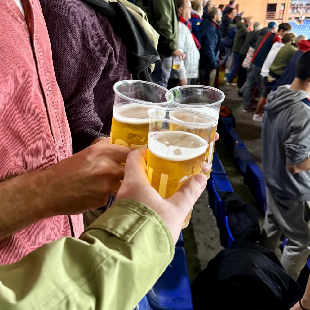 Auf dem Weg dorthin fanden wir nebenbei einen Bierstand, so dass wir zusammen mit dreimal 33 cl Castello Lager à 5 € auf den Zuschauerrängen Position beziehen konnten. Allerdings war die Innenansicht dieses für die WM 1990 grundlegend umgebauten Stadions sogleich noch berauschender als der Becherinhalt. Ich ahnte bereits anhand von Fotos und Erfahrungsberichten von Freunden, dass ich dieses Stadion lieben werde. Aber dass meine beiden Begleiter ebenfalls nicht mehr aus dem Schwärmen herauskamen, spricht wahrscheinlich auch objektiv für dieses Schmuckstück. Schließlich ist der Stadionfetisch bei Gianluca und Johnny weitaus weniger ausgeprägt, als bei mir.