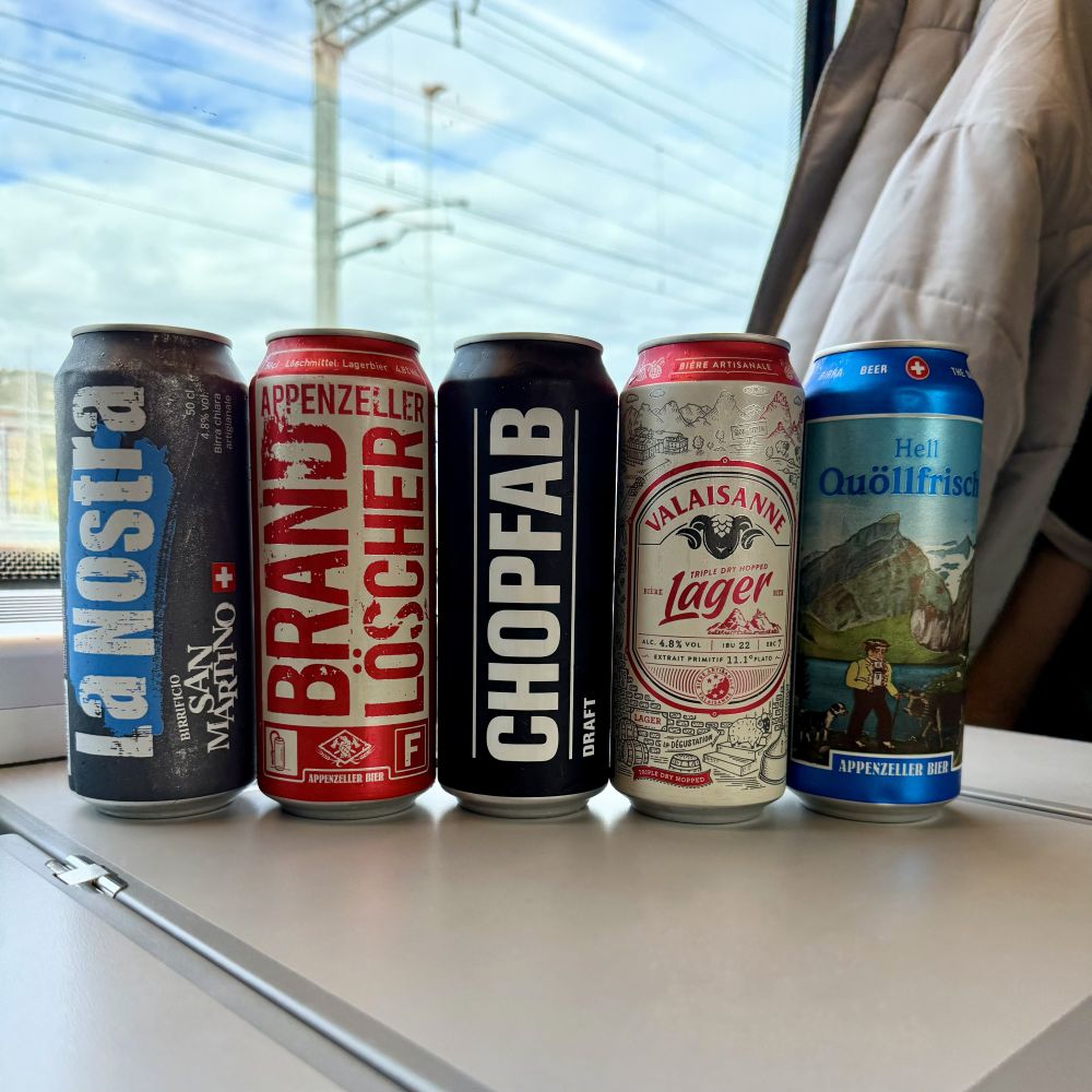 Mit einer bunten Auswahl eidgenössischer Bierspezialitäten ging es nun auch reibungslos durch deren Erzeugerland. Allerdings hatte die DB schlechte Nachrichten. Unser ICE von Basel nach Hildesheim sollte ausfallen, respektive aufgrund von Verspätung aus vorheriger Fahrt erst in Freiburg starten. Glücklicherweise wir saßen in einem EuroCity der SBB, der eh noch bis Frankfurt am Main fuhr und konnten so auch in Freiburg anstatt Basel umsteigen. In der Stadt an der Dreisam blieb sogar noch Zeit für einen Nachmittagsimbiss vom Drehspieß, ehe ICE 272 zumindest in Freiburg planmäßig um 16:55 Uhr losrollte. Wegen kleinerer Verzögerungen im Rhein-Main-Gebiet erreichten wir Hildesheim schließlich mit +25 min um exakt 22 Uhr.