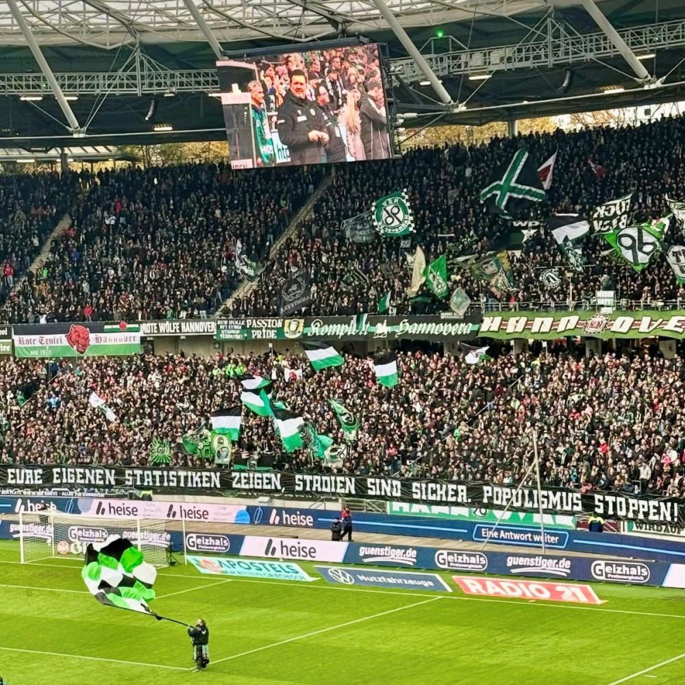 Noch deutlicher reagieren selbstverständlich die mittlerweile hervorragend vernetzten Fanszenen. Bereits vor zwei Wochen gab es in den Stadien eine einheitliche Spruchbandaktion und begleitende Stellungnahmen über die übliche Kanäle wie Kurvenflyer oder Internetpräsenzen. Am spielfreien Vorwochenende folgte im Vorfeld des Länderspiels Deutschland – Slowakei eine Fandemo in Leipzig. Trotz nur weniger Tage Vorlaufzeit demonstrierten dort an die 20.000 Fans aus der ganzen Republik gegen die Pläne der Innenministerkonferenz (darunter auch ca. 250 Anhänger von Hannover 96). Um an diese eindrucksvollen Bilder anzuknüpfen, war für den aktuellen Spieltag bundesweit ein zwölfminütiger Stimmungsboykott angekündigt worden.