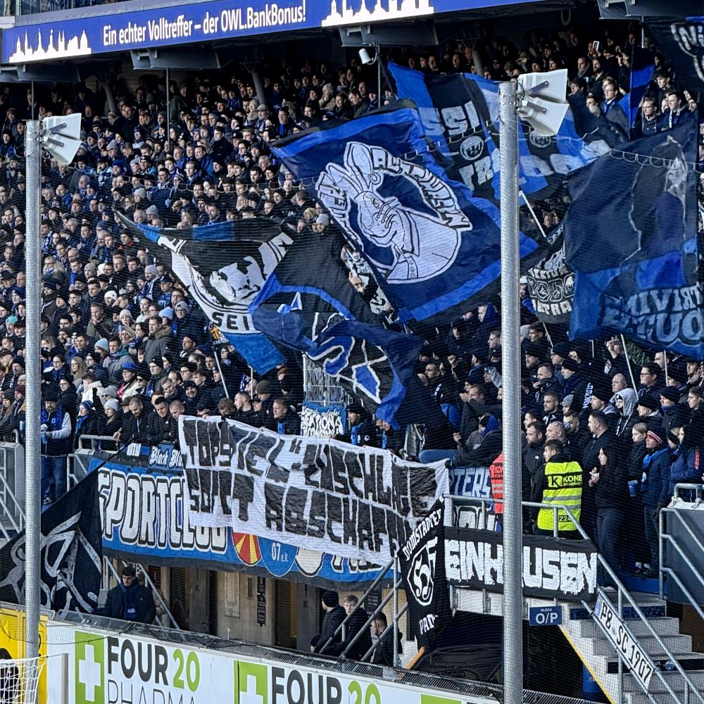 Bleibt nur noch zu erwähnen, dass das ab der 13. Spielminute ein ziemlich überzeugender Auftritt der Gästekurve war. Außerdem saß ich heute mal so nah an der aktiven Fanszene des SCP, dass ich von denen erstmals richtig was gehört habe. Fand deren Liedgut ganz abwechslungsreich und ansprechend, aber zugleich wird dieses nur vom Stimmungskern rund um die Gruppen Supporters Paderborn, Black Blue Fighters und Pasione getragen. Rechts und links von diesen Aktivposten herrschte hingegen nicht nur für zwölf Minuten ein ziemlicher Totentanz.