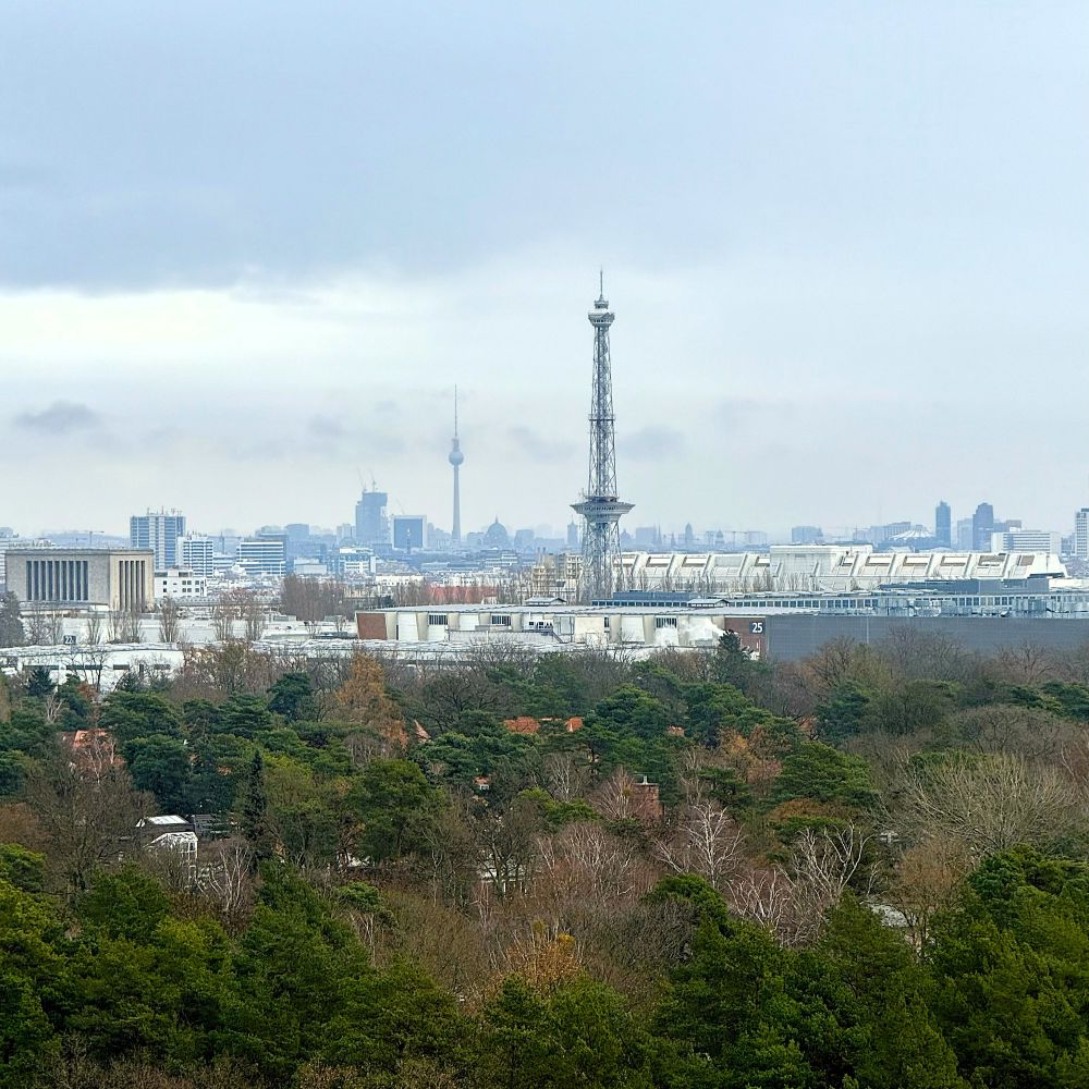Während man den Teufelsberg mit Bäumen bepflanzte, ließ man das Plateau des Drachenbergs kahl. Dementsprechend bietet der niedrigere der beiden Nachbarhügel den deutlich besseren Ausblick. Wir konnten unsere Blicke hier einerseits über den Grunewald schweifen lassen und andererseits erwartete uns ein schönes Stadtpanorama mit u. a. dem Funkturm und dem Fernsehturm.