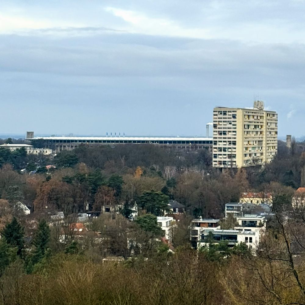 Der Teufelsberg, auf dem sich eine verfallene Abhörstation der US-Amerikaner aus dem Kalten Krieg befindet, wäre sicher auch noch einen Abstecher wert gewesen. Aber die frühe Anstoßzeit um 13:30 Uhr setzte der Ausdehnung unseres Ausflugs gewisse Grenzen. Ergo ging es gegen 11:30 Uhr auf der dem Olympiastadion zugewandten Seite wieder vom Drachenberg hinab, wo uns mit der Unité d’habitation noch eine architektonische Perle am Wegesrand erwartete.