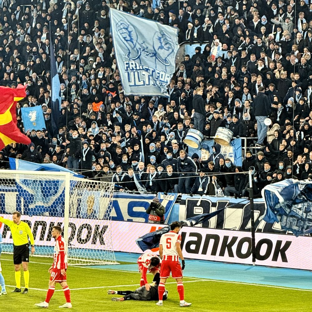 Ferner hatten sich noch hunderte weitere Fans und Sympathisanten des serbischen (und jugoslawischen) Rekordmeisters mit Tickets in anderen Sektoren eingedeckt. Darunter sicher viele Schweden mit Wurzeln auf dem Balkan (insbesondere in Malmö gibt es da eine große Community). Außerdem hatte man es aus Norwegen, Dänemark oder Deutschland ja auch nicht besonders weit nach Malmö. Dabei kam den unorganisierten Fans aus der serbischen Diaspora sicher zugute, dass Malmö FF am vorletzten Spieltag der Ligaphase bereits keine Chance mehr auf’s Weiterkommen hat und die Ticketnachfrage heimseitig geringer als üblich ausfiel.