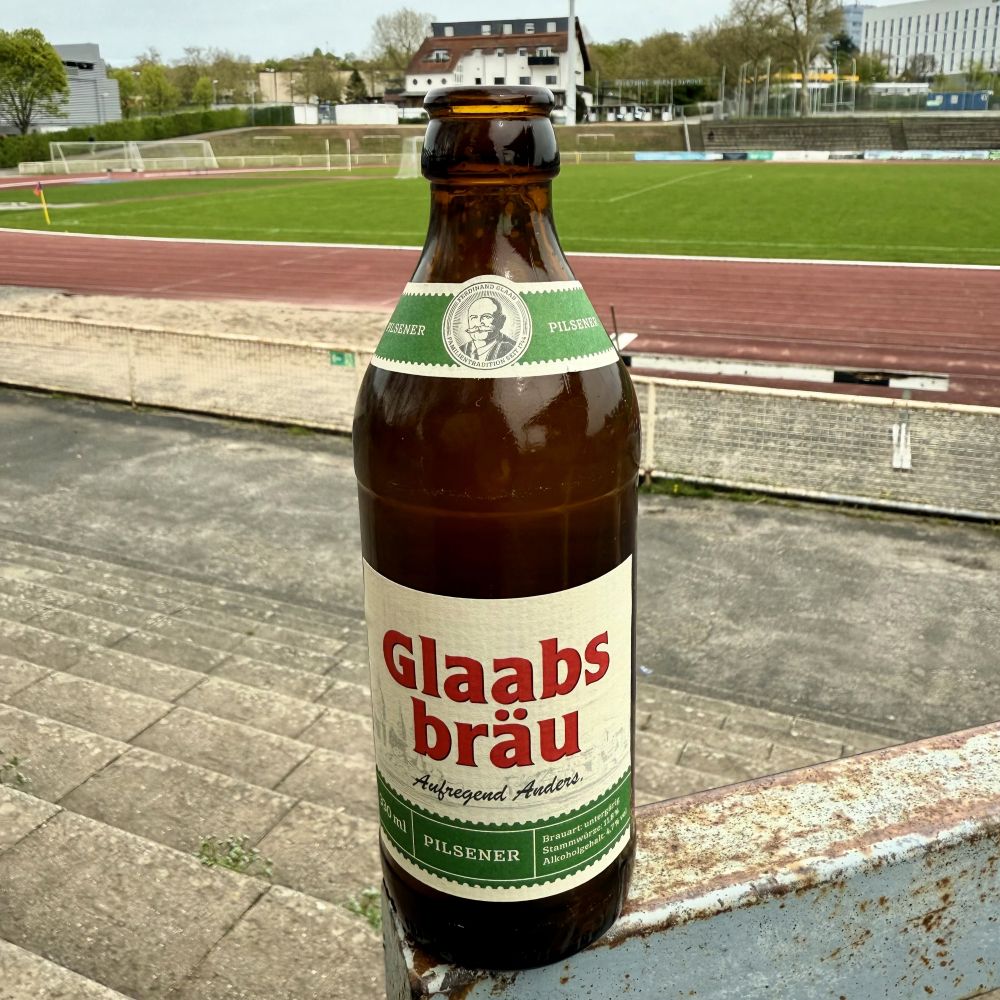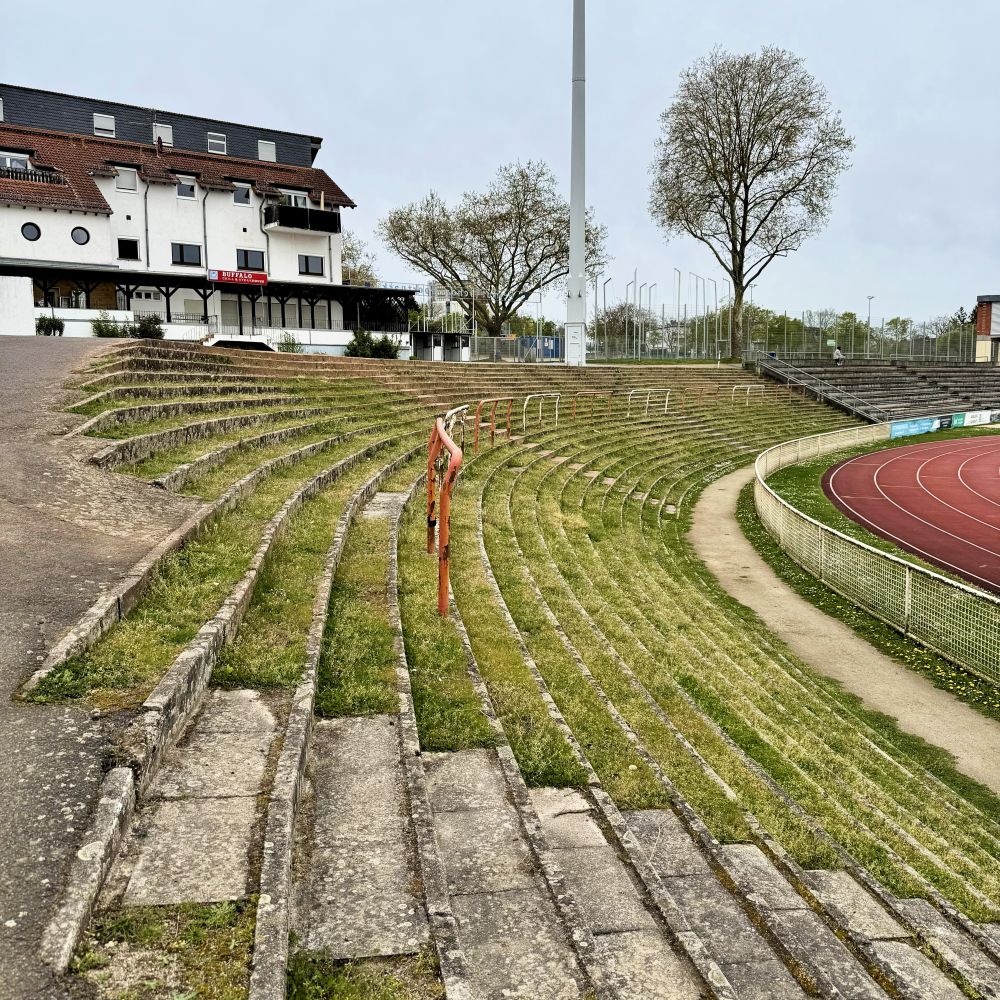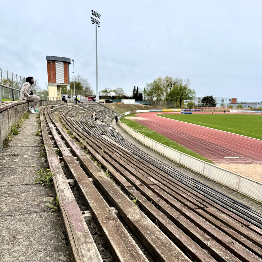 Während die mittlerweile als SV Wehen-Wiesbaden firmierenden Wehener der Landeshauptstadt endlich Profifußball bieten und auch sonst im Rhein-Main-Gebiet einige Optionen für höherklassigen Fußball existieren, fristet der SV Wiesbaden sein Dasein zur Zeit in der Gruppe Mitte der sechstklassigen Verbandsliga Hessen. Obendrein las ich im Stadionheft, welches es als kostenlose Beigabe zur 7 € teuren Eintrittskarte gab, dass aus den bisherigen sechs Spielen im Jahr 2026 lediglich ein Punkt herausprang. Entsprechend rutschte man in der Tabelle von Rang 9 auf 13 und steckt mittlerweile im Abstiegskampf.