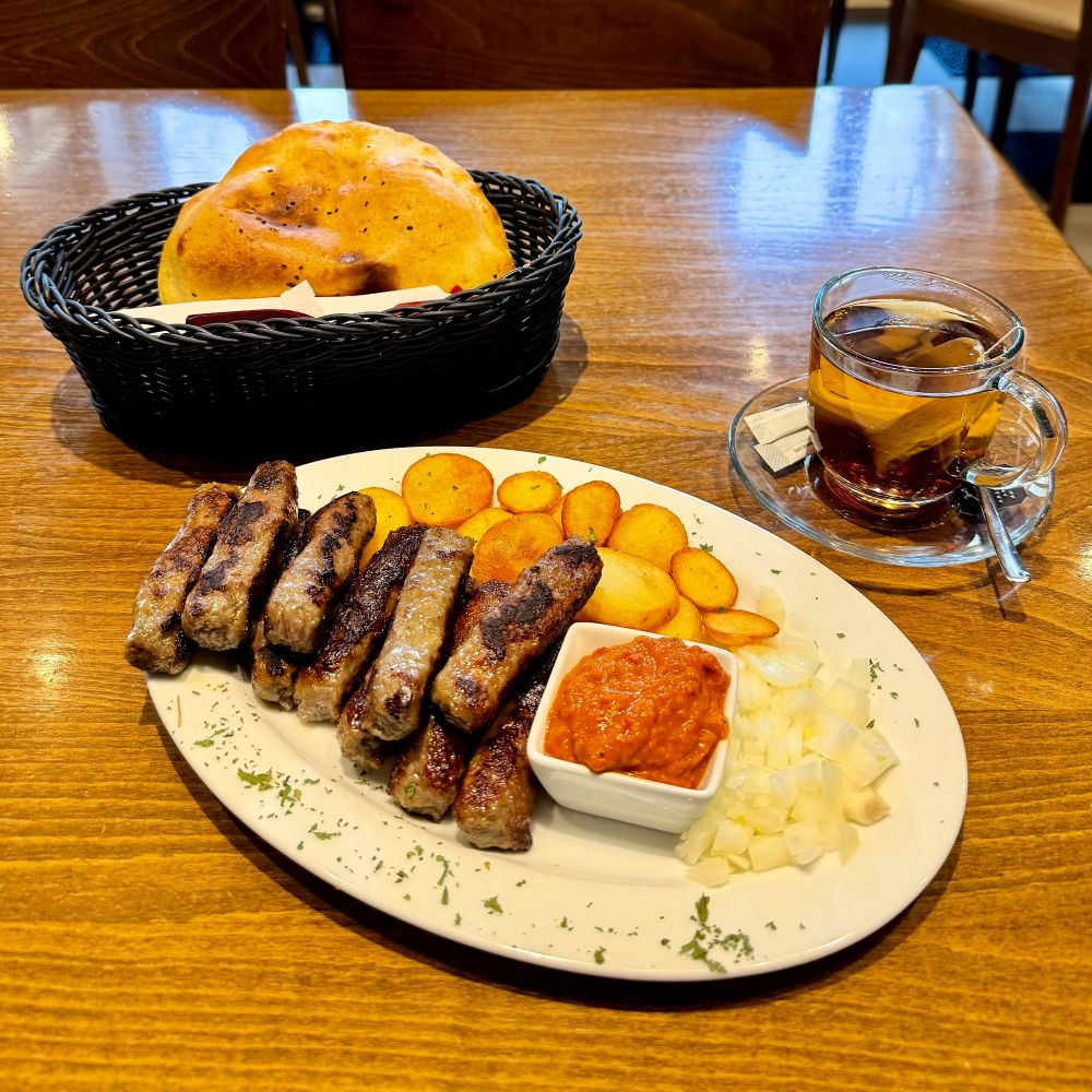 Nach einer 45minütigen Bahnfahrt erreichte ich die von ca. 290.000 Menschen bewohnte Hauptstadt des Bundeslandes Hessen und hatte zunächst ein deftiges Mittagsmahl im Sinn. Es ging deshalb in den Ex-Yu Balkan Grill, wo ich beim bosnischen Grillmeister zehn Ćevapčići nebst Brot, Kartoffeln, Zwiebeln und Ajvar orderte. War köstlich und kostete zusammen mit einem Tee 15,50 €.