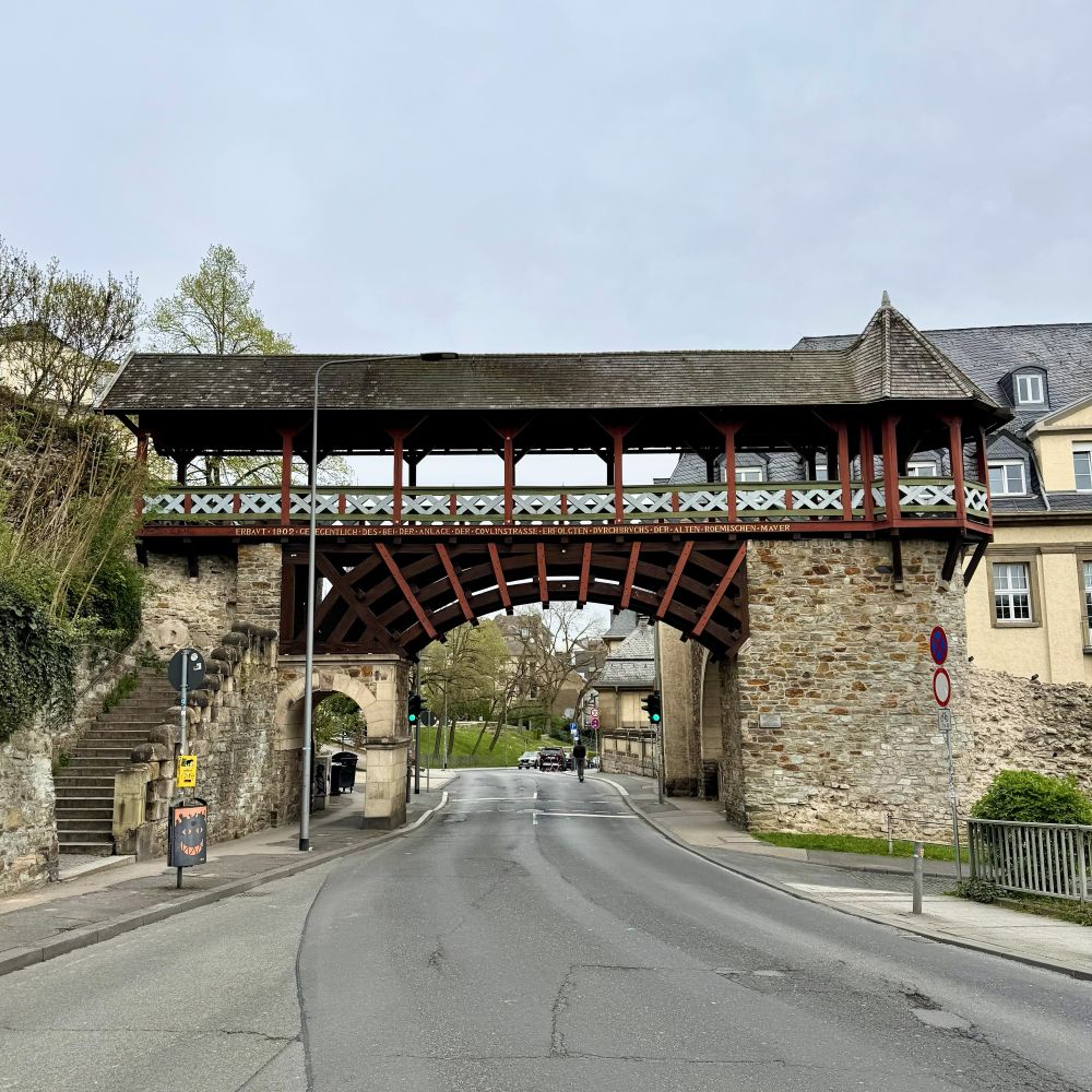 Anschließend widmete ich dem Stadtbild der hessischen Kapitale, deren Geschichte eng mit ihren insgesamt 14 kochsalzhaltigen Thermalquellen verwoben ist und zugleich bis in die Antike zurückreicht. Denn bereits im 1. Jahrhundert n. Chr. erkannten die Römer den besonderen Wert jener heißen und heilsamen Quellen. Als sie ihr Imperium zu jener Zeit bis an den Rhein ausdehnten, gründeten sie hier die Siedlung Aquae Mattiacorum (benannt nach dem germanischen Stamm der Mattiaker) und errichteten mehrere Badehäuser. Einziges sichtbares Erbe der Römerzeit ist heute jedoch lediglich ein Mauerrest aus dem 4. Jahrhundert. Diese so genannte Heidenmauer wurde indes im 19. Jahrhundert zum Bau einer neuen Straße durchbrochen und am Durchbruch errichtete man ein nach antiken römischen Vorbildern gestaltetes Stadttor.