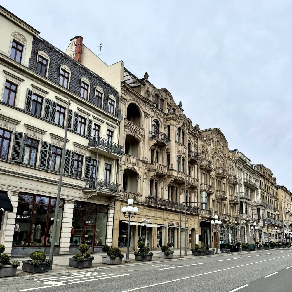 Nach der Gründung des Deutschen Reichs im Jahre 1871 wurde zwar das Glücksspiel verboten, aber dafür kurte mit Kaiser Willhelm II. (* 1859; † 1941) einer der größten Influencer des Reiches am liebsten in Wiesbaden. Im Glanze des Kaisers stand das Nizza des Nordens bei Blaublütigen und betuchten Bürgerlichen weiterhin hoch im Kurs und um die Jahrhundertwende kam es erneut zu einer regen Bautätigkeit. In dieser Zeit entstanden rund um den Stadtkern mehrere Villenviertel im Jugendstil, sowie als neue Landmarken im Zentrum u. a. das Neue Rathaus (1887), das Königliche Theater (1894), der Hauptbahnhof (1906) und das in meinem Titelbild zu sehende Neue Kurhaus (1907).