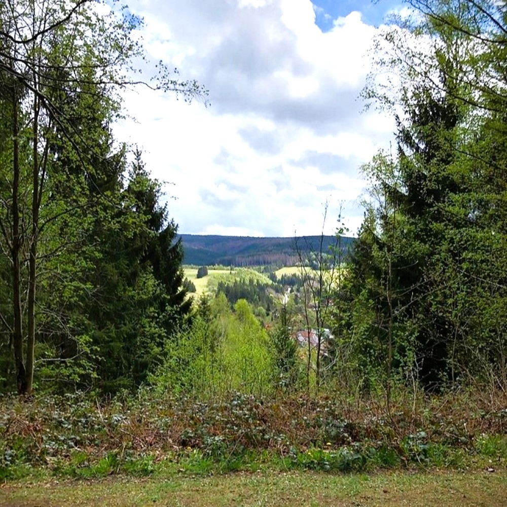 Weiter ging es nach Altenau, wo oberhalb des Ortskerns auf Wanderkilometer 7,9 die Köte Brockenblick einen weiteren Stempelkasten bereithielt. Ausblick bis zum Brocken war heute nicht und die Sichtachse zur zu unseren Füßen liegenden Bergstadt Altenau war obendrein ziemlich zugewachsen.