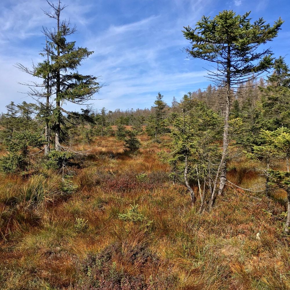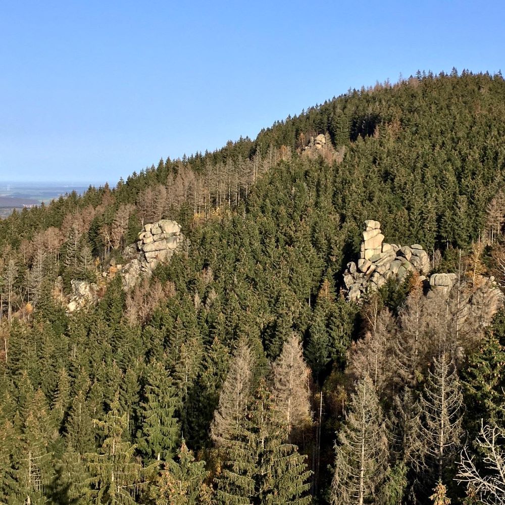 Im Bericht Wernigerode 09/2020 hatte ich schon ein bisschen über meinen kleinen biografischen Harzbezug ausgeholt. Wie dort erläutert, wurde ich durch meinen Vater auf die Harzer Wandernadel aufmerksam. Ende September passte es endlich mal gemeinsam mit ihm und meiner Stiefmutter loszuwandern. Ich hatte eine Tour zwischen Torfhaus und Altenau ausgearbeitet und wir parkten am Bruchberg unterhalb der Wolfswarte. Jene Felskuppe auf 918 m ü. NN befand sich 1,75 km von unserem Parkplatz entfernt und somit war nach ca. 25 Minuten neue Tinte im Stempelbuch.