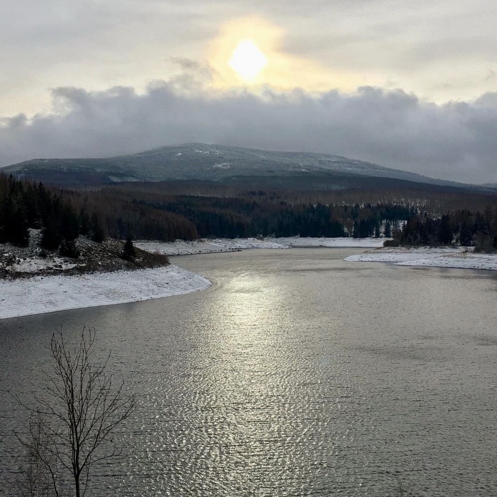 Zwei Wochen nach meiner ersten Tour ging es erneut nach Goslar, um die zwei vertagten Stempelstellen in Angriff zu nehmen. Zunächst ging es vom Bahnhof zum Quellwiesenbiotop Rheinbachtal und von dort weiter zur Granetalsperre. Am Ostufer des Stausees erwartete mich auf Tourkilometer 3,5 ein Stempelkasten und ein schöner Ausblick auf den Nordteil der Talsperre.