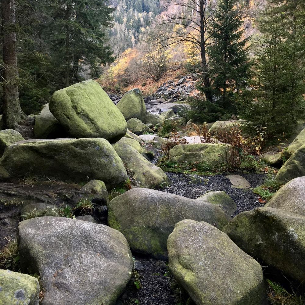 Die Schurre (ein alpiner Trail von der Rosstrappe ins Bodetal) war allerdings zur Zeit aus Sicherheitsgründen gesperrt und so ging es über den bequemeren, aber ungleich längeren Präsidentenweg hinunter ins Tal. Am Hirschgrund war auf Tourkilometer 4,1 nun nicht nur das Gasthaus Königsruhe zu finden, sondern auch der zweite Stempelkasten des Tages.