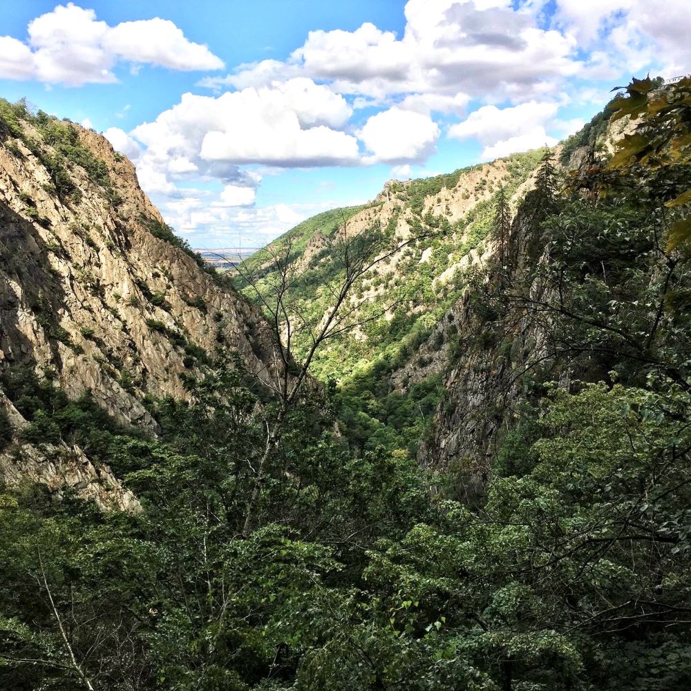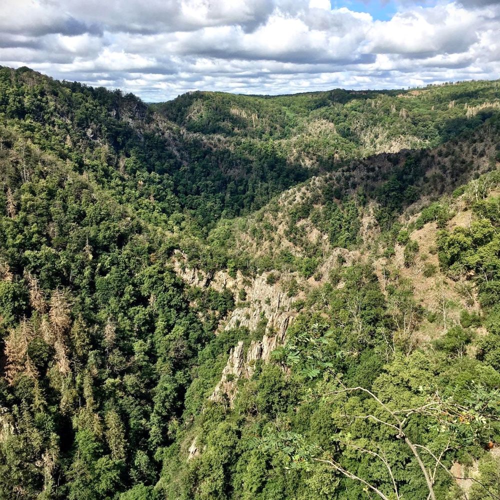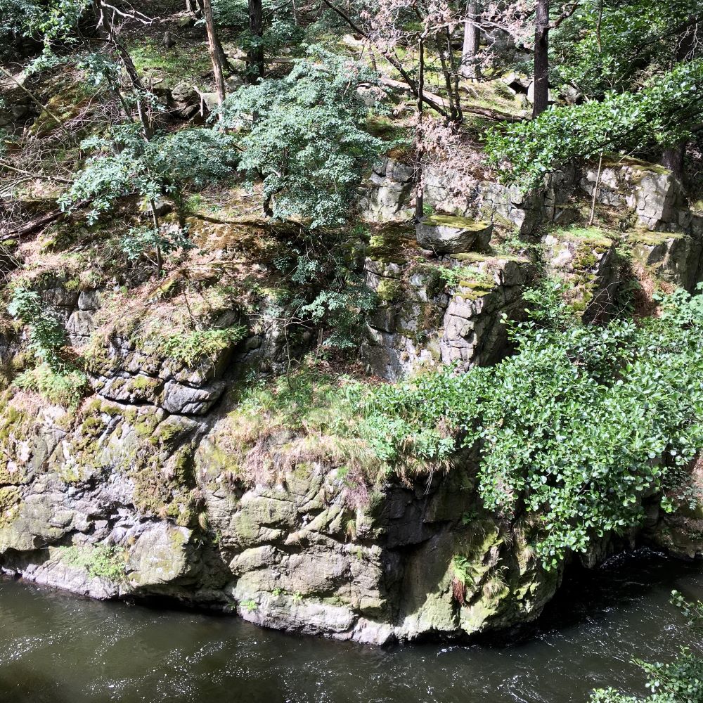 Kurz nach dem Hirschgrund überquerten wir die Bode auf der Teufelsbrücke und einer der schönsten Wanderwege des Harzes wurde auf den nächsten 7 km begangen. Auf und ab, über Stock und Stein, schlängelte sich der Weg parallel zum Fluss durch die imposante Schlucht mit ihren hoch aufragenden Felswänden. Kurz vor Treseburg erwartete uns auf Tourkilometer 10,3 außerdem an der Sonnenklippe der dritte Stempelkasten des Tages.