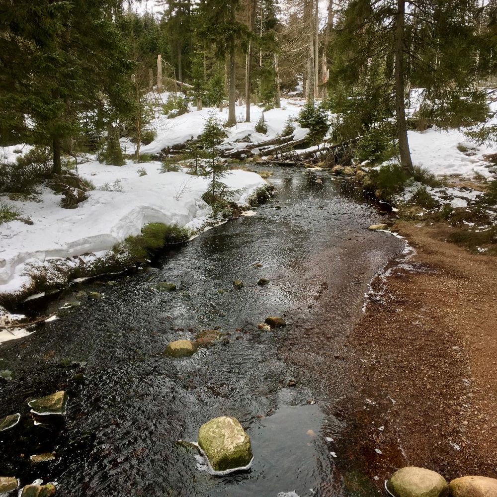 Nördlich von Festenburg stießen wir auf den Oberen Schalker Graben, dessen Lauf uns wieder Richtung Hahnenklee führte. Denn dieser sammelte dereinst die Bergwasser vom Südhang der Schalke und führte sie den Hahnenkleer Gruben zu. An einem Lochstein am Oberen Schalker Graben – der früher die Grenze zweier Bergbaugebiete markierte – wartete außerdem Stempel Nr. 3 des Tages auf uns. Wir folgten dem Graben noch bis zur Alten Harzstraße, dann bogen wir nordwärts zum Auerhahn ab. Zurück am Ausgangspunkt waren wir nach 14,3 km und 350 Hm (dauerte witterungsbedingt 4:45 h).