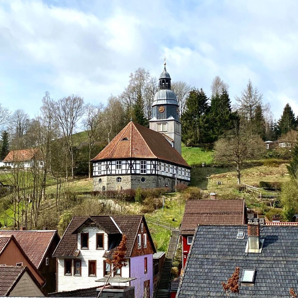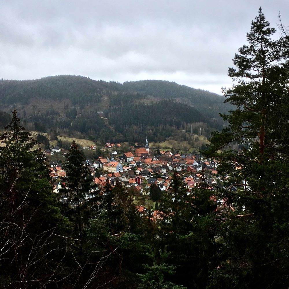 Enden sollte unsere heutige Tour in Lautenthal. Bis dorthin waren nochmals knapp sechs Kilometer zu meistern. Oberhalb der Bergstadt erwartete uns am Bielstein ein weiterer Stempelkasten. Auf 495 m ü. NN kann man hier eine tolle Aussicht über Lautenthal genießen. Es ging anschließend den Zwergenweg hinunter zur Ortsmitte und nach 13,7 km (insgesamt 410 Höhenmeter) und 3:45 h hatten wir das Tagesziel erreicht und stiegen in einen Bus, um via Goslar nach Hildesheim zurückzukehren.