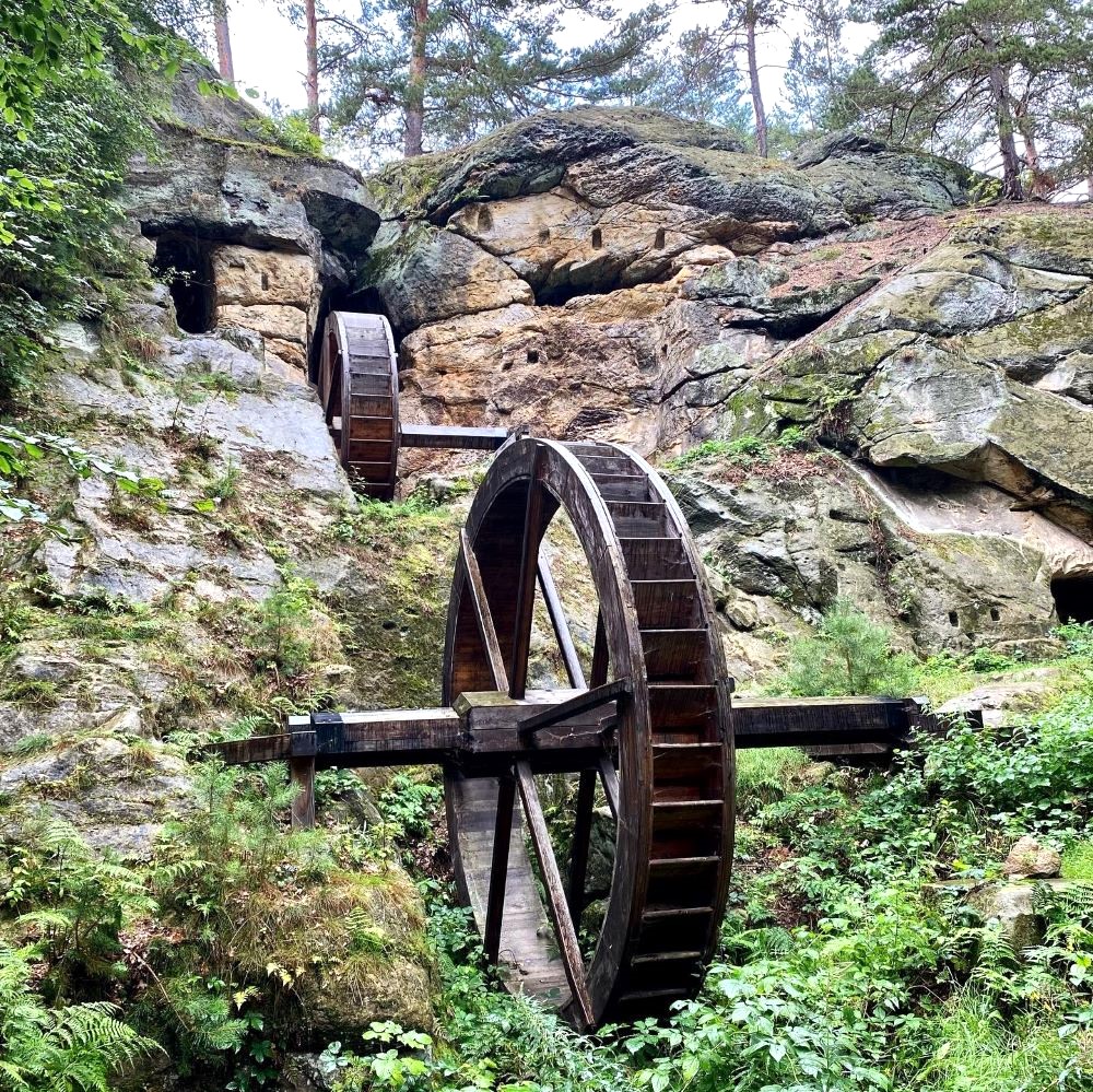 Das nächste Ziel war die nahe Regensteinmühle, welche nur ca. 15 Wanderminuten bzw. 1,2 km von der Burgruine entfernt ist. Jene Mühle wurde Ende des 12. Jahrhunderts erbaut und versorgte bis ins 15. Jahrhundert die Burgbewohner des Regensteins mit Mehl und Öl aus Saatgut. Das benötigte Aufschlagwasser für die Mühlräder wurde mittels eines knapp zwei Kilometer langen Grabens vom nahen Goldbach zur Regensteinmühle geleitet.