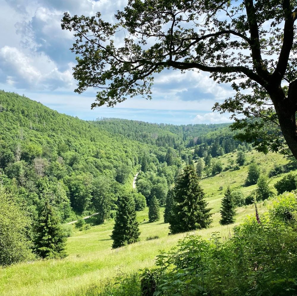 Am 27. Juni machte ich mit meinem Vater und meiner Stiefmutter eine Wanderung bei Zorge. Wir starteten auch in Zorge und von dort ging es zu einer Stempelstelle, die zufälligerweise den Stiefmüttern dieser Erde gewidmet zu sein scheint. Diese Wegkreuzung namens Stiefmutter bietet oberhalb der Hundertmorgenwiese im Elsbachtal ein nettes Panorama. Ferner verlief in Spuckweite dereinst die innerdeutsche Grenze zwischen der BRD und der DDR. Auf der ehemaligen Grenze führte uns der Weg nun weiter zur Wendeleiche.