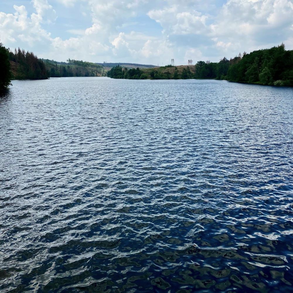 Mein nächstes Ziel war nun die Hassel-Vorsperre, welche sich in 7 km Distanz vom Rotestein befindet. Der Weg führte mich teilweise an der Talsperre entlang, die Bäume ließen allerdings selten schöne Sichtachsen zu. Die Hassel-Vorsperre erreichte ich nun auf dem heutigen Wanderkilometer 8 nach knapp zwei Stunden. Nach kleiner Trink- und Stempelsperre ging es sogleich weiter zur nächsten Vorsperre.