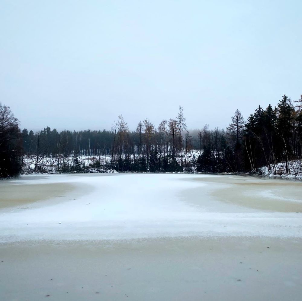 Wenig später passierte ich die B185 und anschließend führte mich ein steiler und heute vereister Trail hinunter zum Kleinen Siebersteinteich. Nachdem das technisch anspruchsvollste Teilstück der heutigen Tour unfallfrei gemeistert war, ging es vom Teich weiter zum nächsten Stempelkasten. Jener war auf meinem heutigen Wanderkilometer 4,4 am Grauwacke-Steinbruch Rieder zu entdecken. Dort wird seit 1935 hochwertige Grauwacke abgebaut und von einer Aussichtsplattform, an der sich auch der Stempelkasten befindet, kann man den Steinbruch gut überblicken.